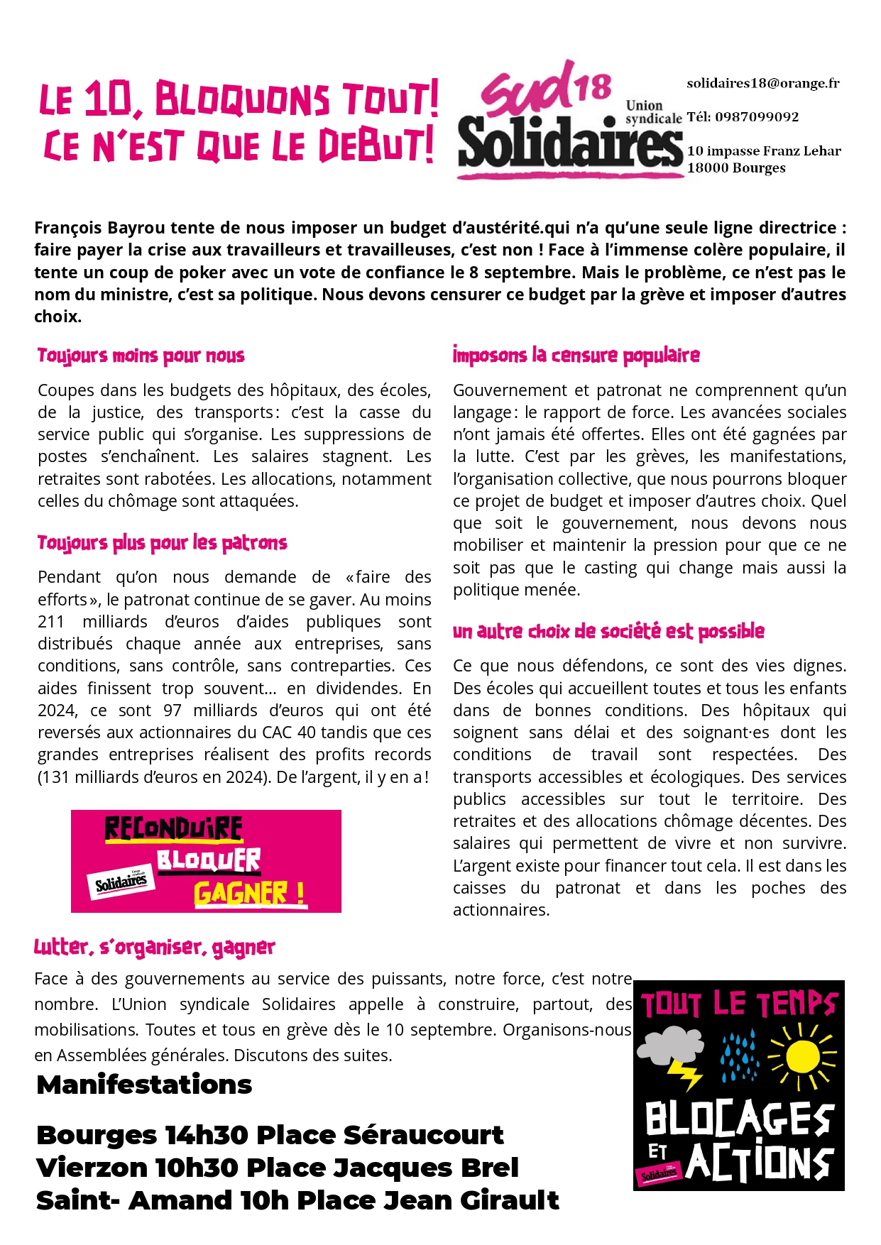Le 10 septembre en grève pour tout bloquer
